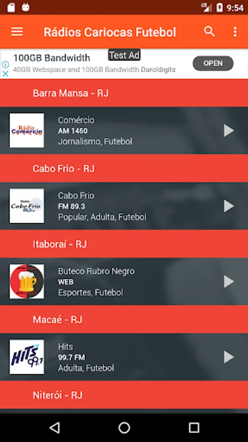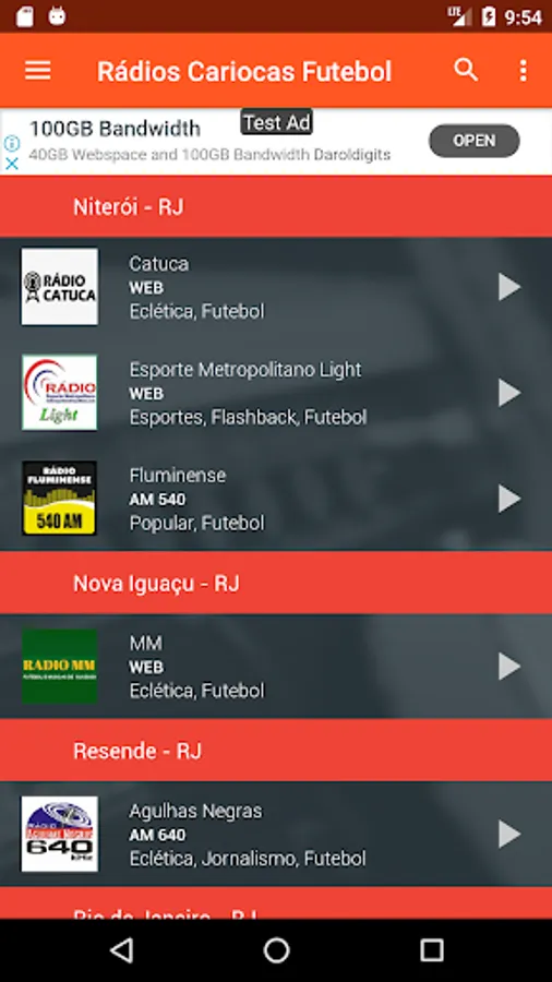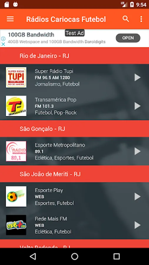 Radios to listen to Flamengo's game, listen to Vasco's game, listen to Fluminense's game, listen to Botafogo's game, listen to Portuguesa's game (from Ilha do Governador), listen to Madureira's game and listen to Bangu's game