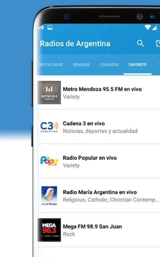 Radios Argentinas with a modern and elegant interface, you also have the option to select a super fast access to your favorite radios.