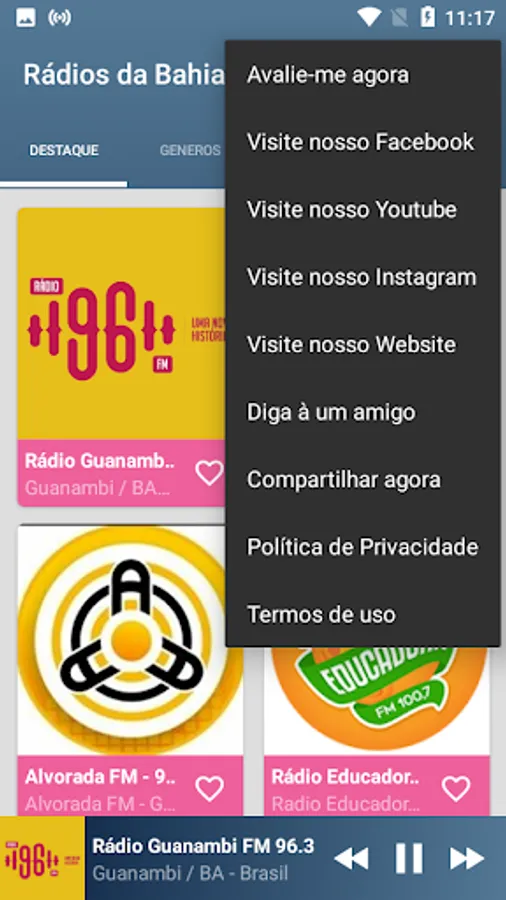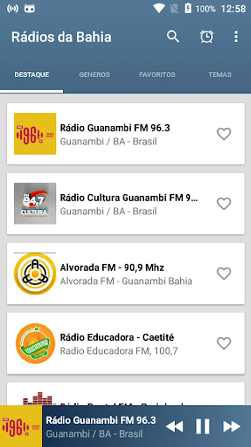 As easy as it is today to download a song on the internet, people have never stopped listening to the radio. That's because, in addition to news, radio is very important in the world of music. At the same time that it brings the biggest news in the music scene, it is also pleasing to rescue classics that marked eras. Whether in the car, at work or at home, the radio is always playing in the background, and that's why WE CREATED The Bahia Radios Application that was developed by MR-INFORMATICA, in order to take you to a variety of Bahia stations with programming 24 hours, we hope the public really likes it.