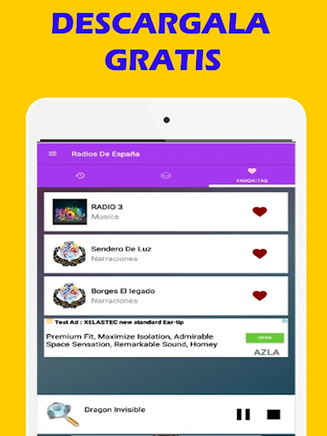 This is the first version of the application in the following updates I will improve it (THANKS FOR YOUR UNDERSTANDING) Spanish stations, FM radio Spain, mysteries in Spanish, beautiful radio soap operas, Spanish music from all over Spain always free on any Radio Spain is the best application of online radio to be able to enjoy totally free of (music, Spanish sports, Spanish radio stations, mysteries and radio soap operas in Spanish) wherever you are at any time and in any place!
