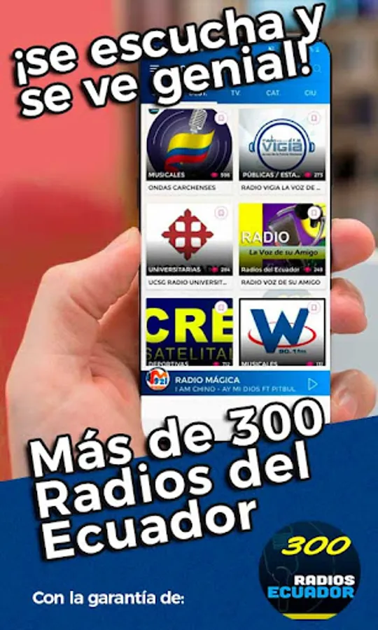 Download the app right now it's free, listen to hundreds and hundreds of radios from your city or province from every corner of Ecuador.