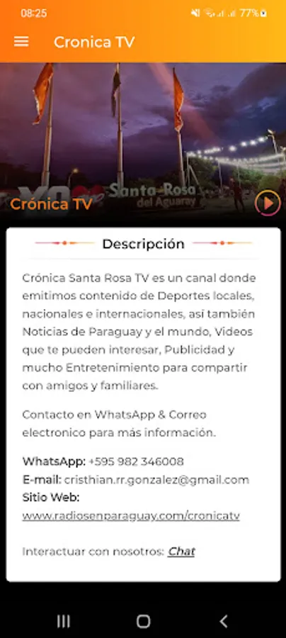 Our Crónica Santa Rosa TV channel is located in the city of Santa Rosa del Aguaray, department of San Pedro - Paraguay.