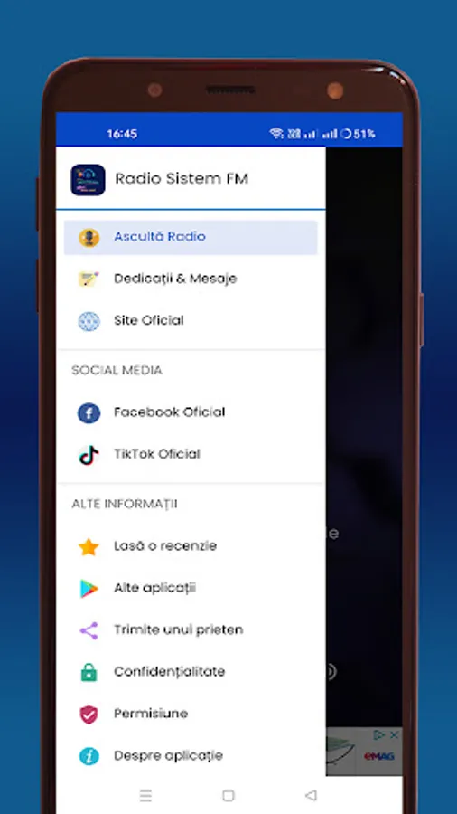 This is the official application of Radio Sistem FM. All text, images, content and trademarks belong to the owner.