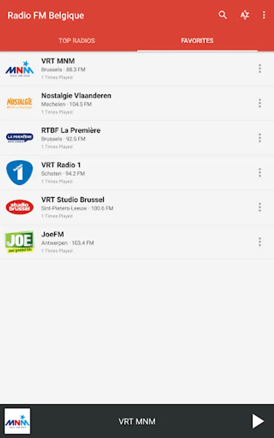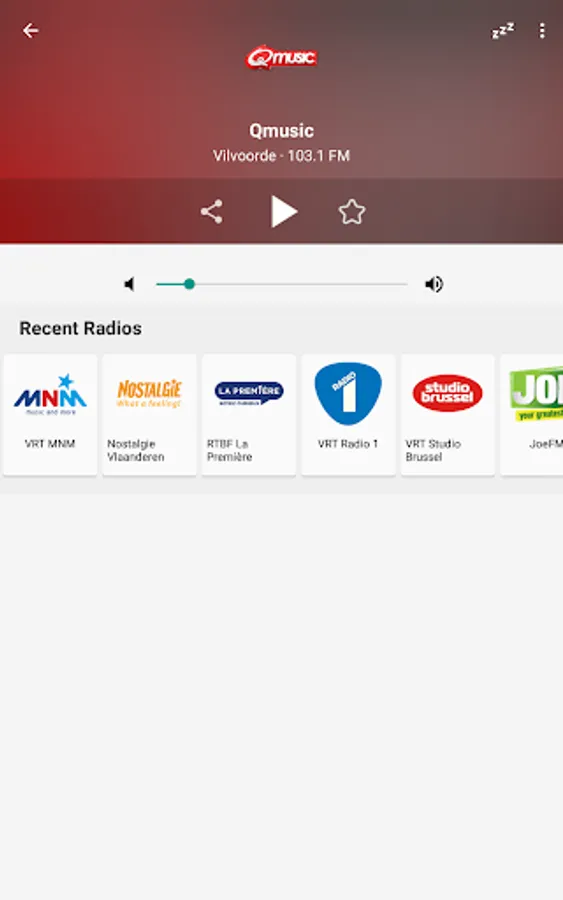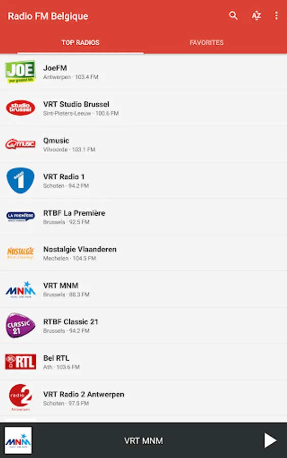 VRT Radio 1, RTBF La Première, VRT Studio Brussel, Qmusic, JoeFM, RTBF Classic 21, Nostalgie, Bel RTL, Radio Contact, VRT MNM, Nostalgie Vlaanderen, RTBF VivaCité, Nostalgie 80, One World Radio, VRT Radio 2 Antwerpen, Klara, MNM Hits, NRJ Belgique, VRT Klara Continuo, VRT Radio 2 West-Vlaanderen, Fun Radio Belgique, Nostalgie 70, Nostalgie 60, Q-Foute Radio, Instrumentals Forever, Radio Minerva 98.0, Willy, Nostalgie, C-Dance, Joe Easy, Belgian Dance Radio, Nostalgie Love, ...