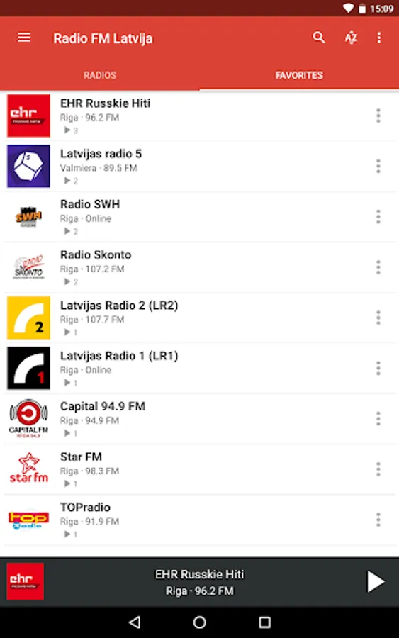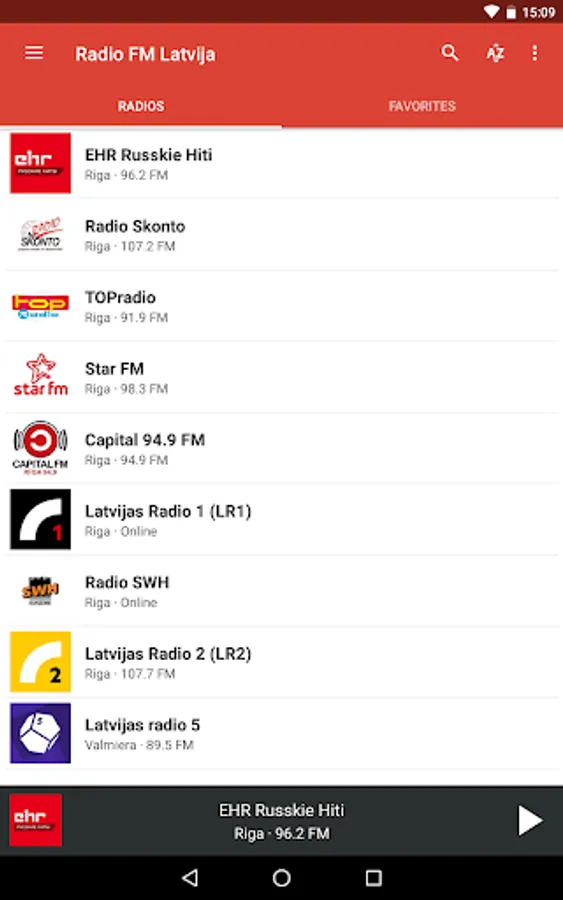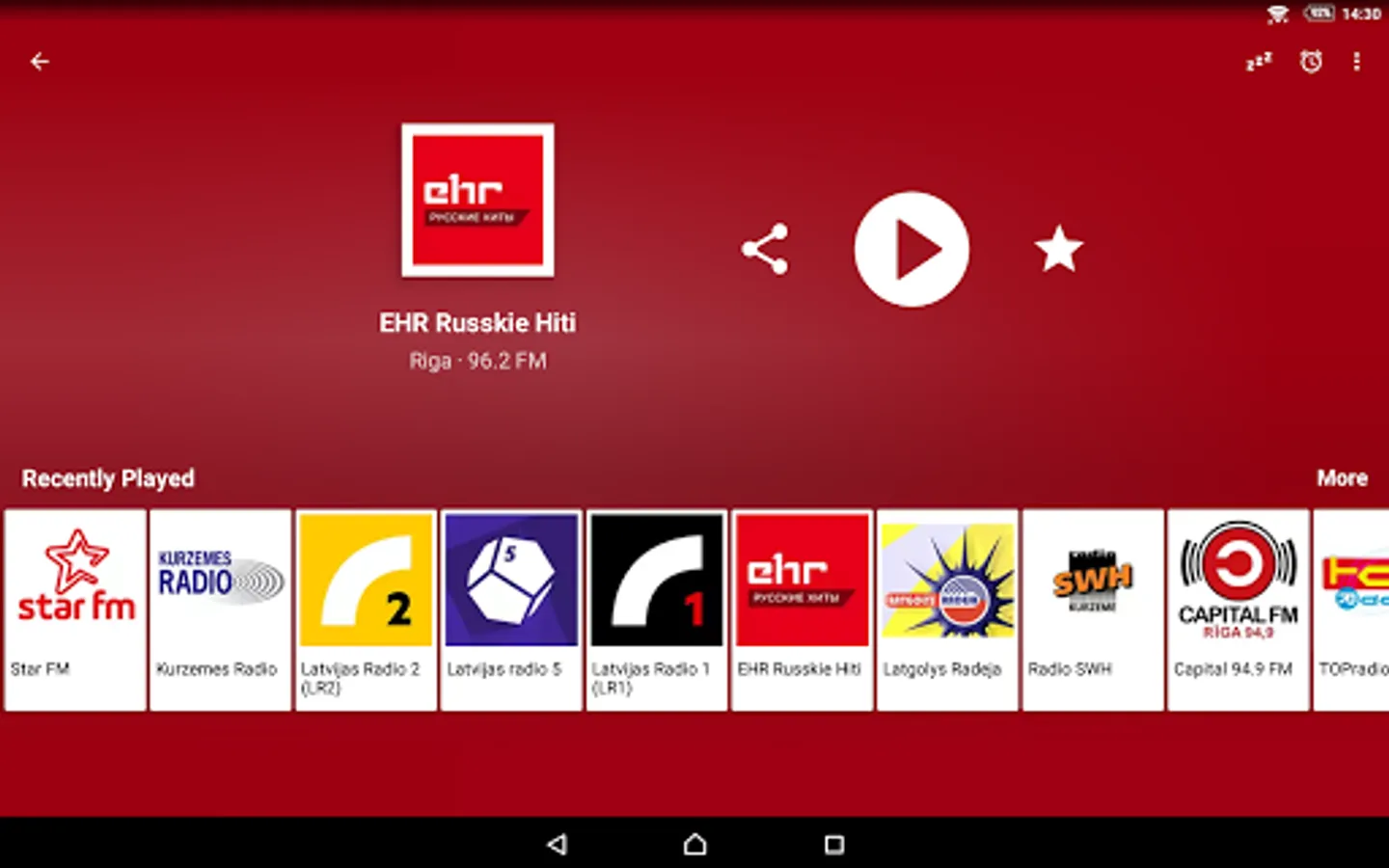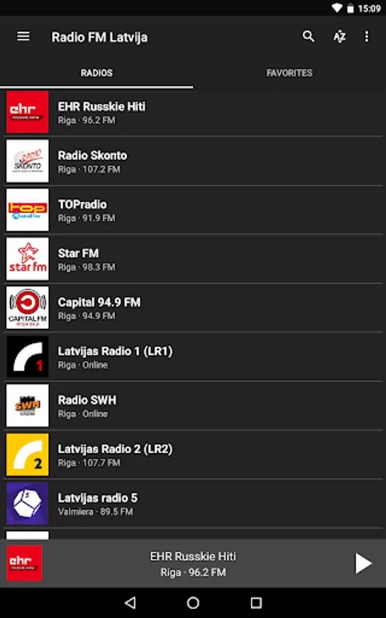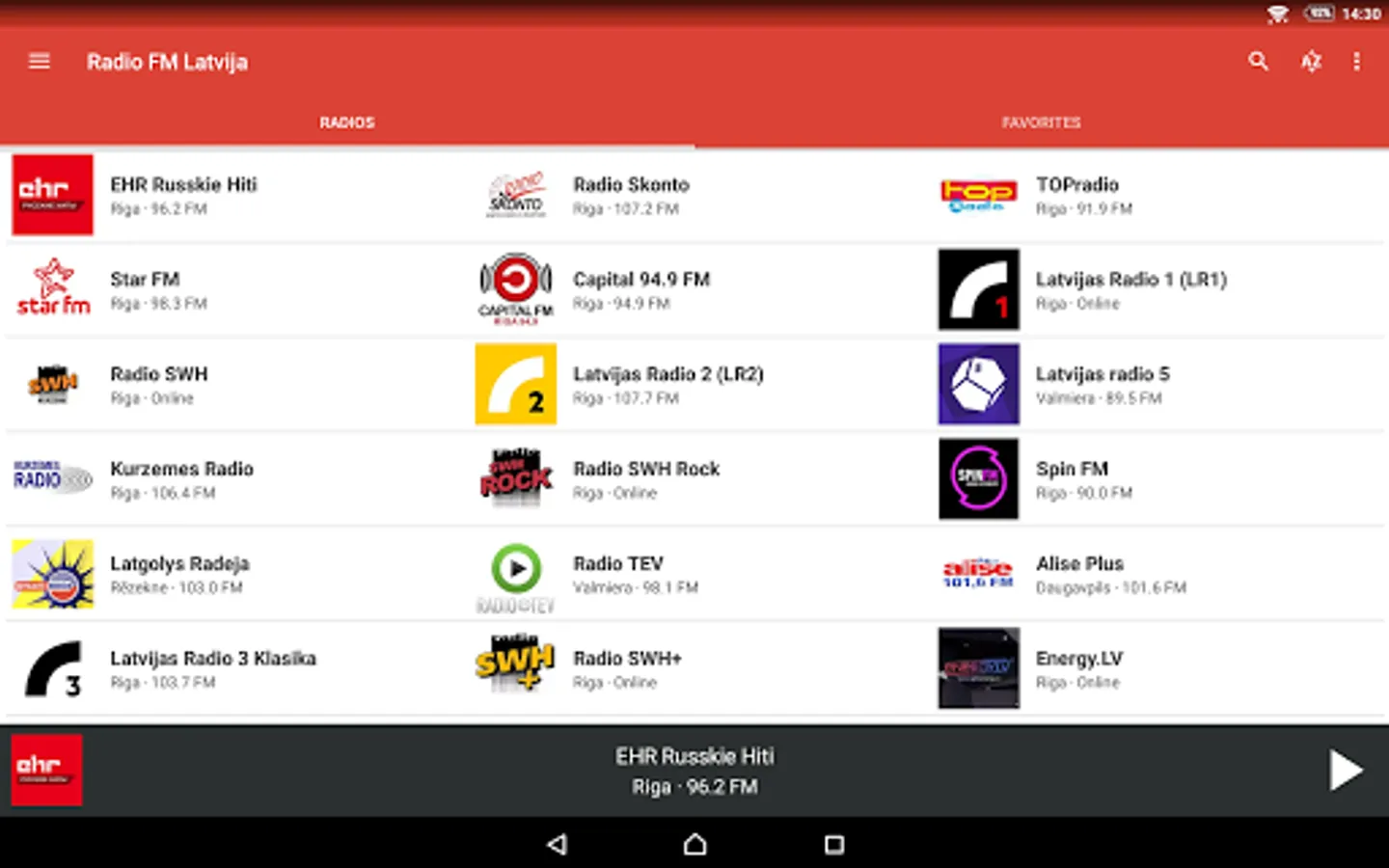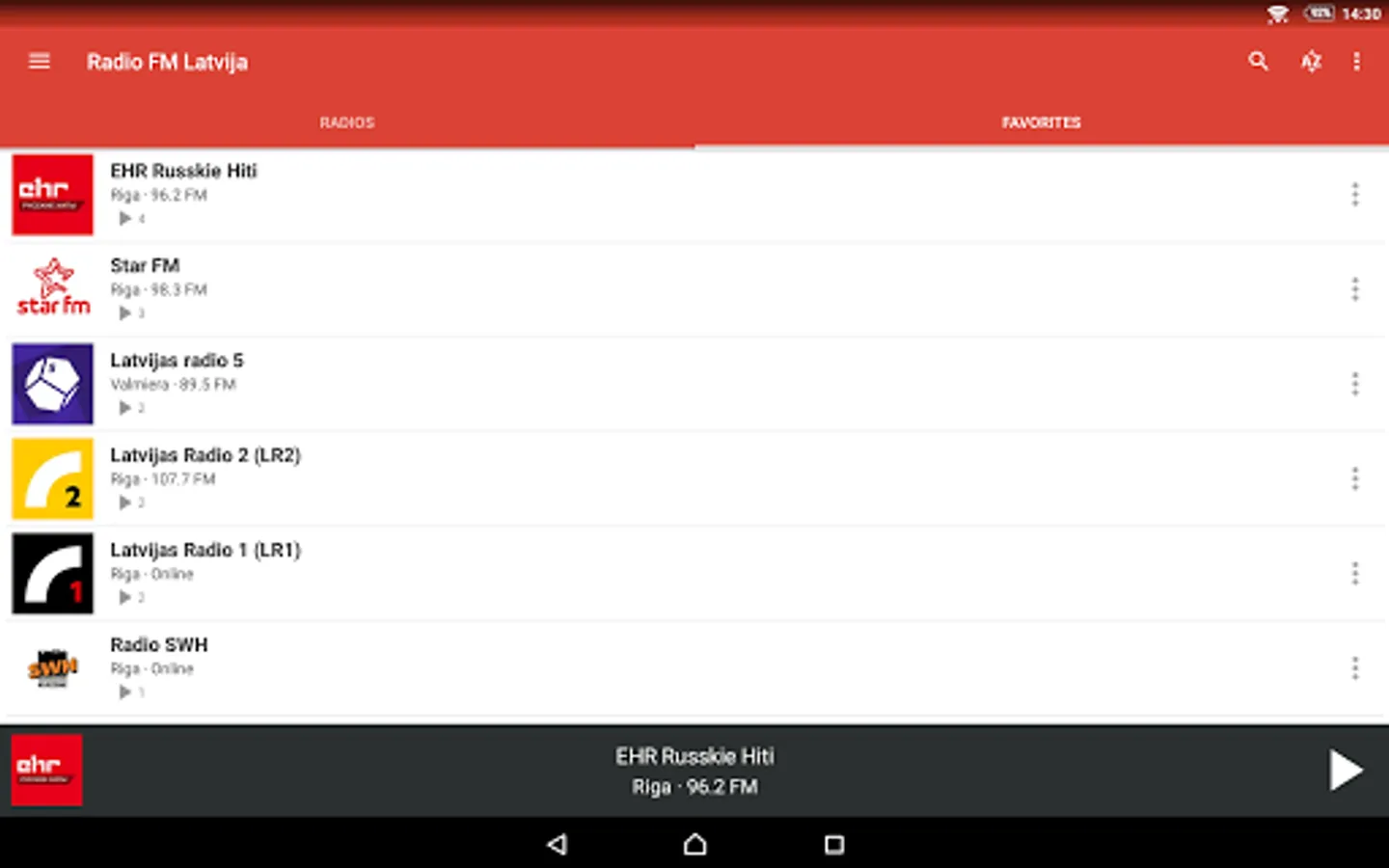 EHR Russkie Hiti, Radio Skonto, TOPradio, LR1, LR2, Star FM, Radio Skonto Plus, Radio SWH, Petpo FM, Radio SWH+, LR5, European Hit Radio (EHR), Kurzemes Radio, Spin FM, Capital 94.9 FM, Latgolys Radeja, Radio TEV, Alise Plus, Energy.LV, Radio Baltkom 93.9 FM, Radio Merkurs, LR4, Dance Music, insomniaFM, Ambiance Groove, Radio Naba, ...