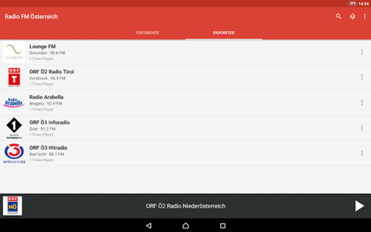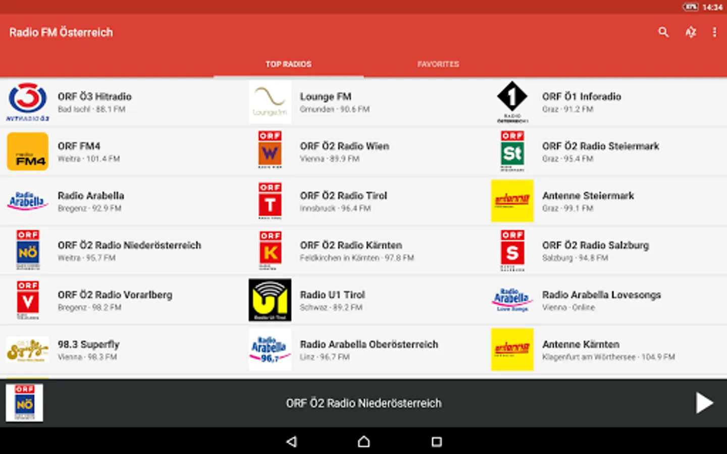 ORF Hit Radio Ö3, KroneHit 105.8, ORF Ö1, ORF Ö2 Vienna, ORF FM4, ORF Ö2 Radio Lower Austria, Lounge FM Digital, Radio U1 Tyrol, ORF Ö2, Austrian Rock Radio, 88.6 Vienna, ORF Ö2, Antenna Styria, Radio Classic, Radio Arabella, ROCK ANTENNA Austria, ORF Ö2 Radio Vorarlberg, ORF Ö2 Radio Salzburg, ORF Ö2 Radio Carinthia, Radio Austria - Best of Schlager, Radio Austria - Best of 80s, Superfly 98.3 FM, NRJ Energy Hits, Krone Hit Digital, ...