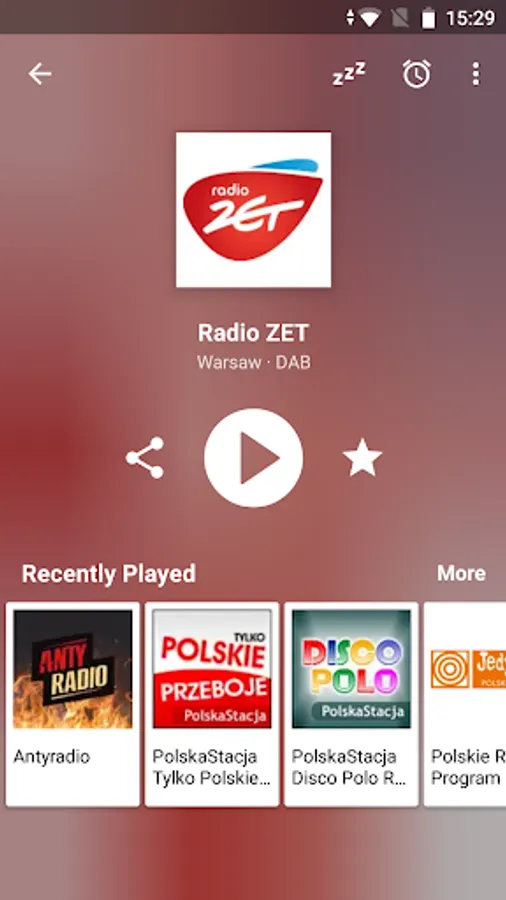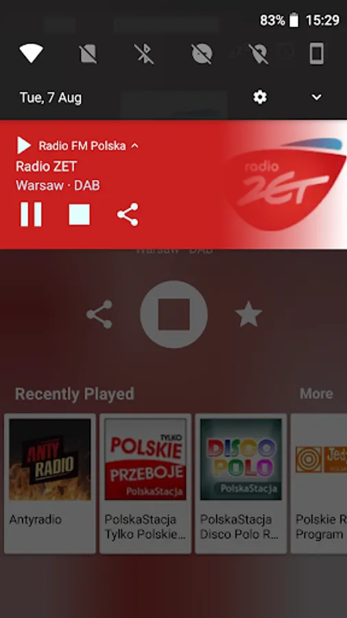 * Recently played radio stations