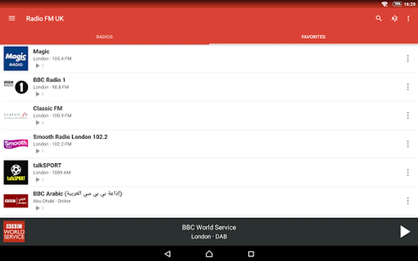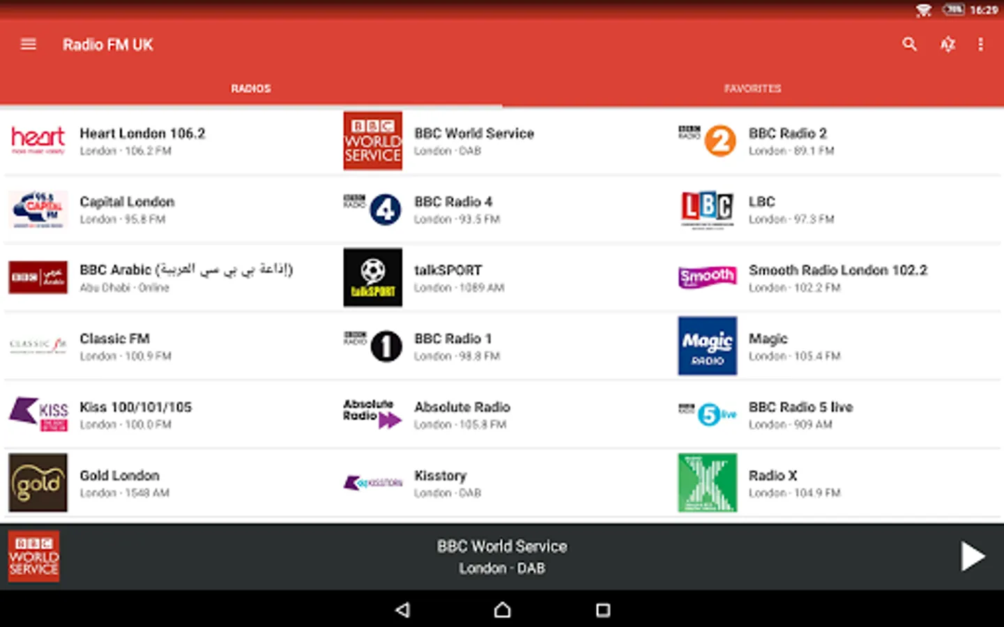 With this app you will enjoy listening to online English radio broadcasts and music on your android, no matter where you are. Best of all, you get to access all this for free with Radio FM UK!!