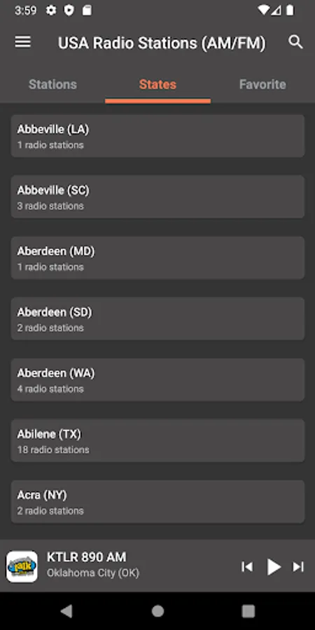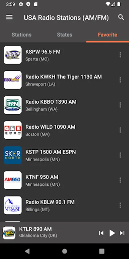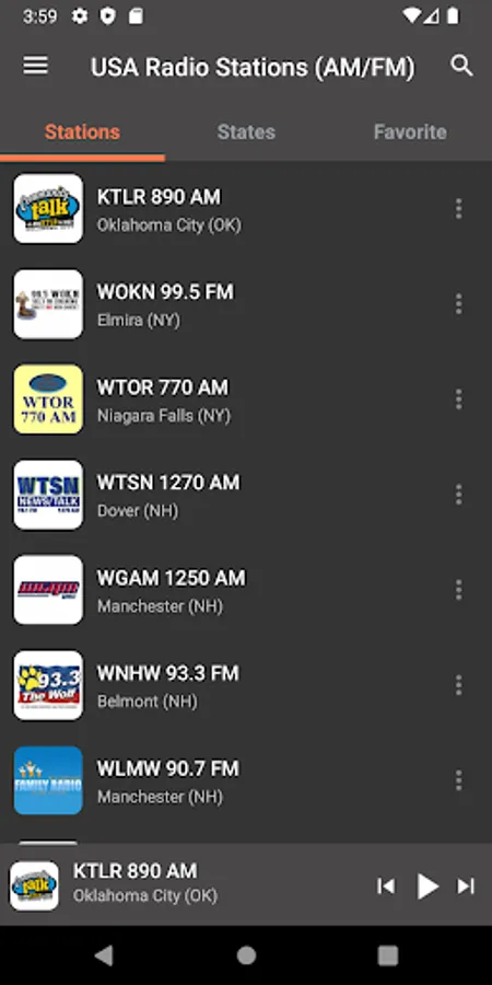 "Radio KIIS 102.7 FM", "FX 99.1 FM KFXY-LP", "WHTZ 100.3 FM", "Lite FM 106.7", "My Country 96.1 FM", "K-LOVE Radio", "WNYC 820 AM - 93.9 FM", "104.1 Zion FM", "La Mega 97.9 FM", "Radio Revolution 93.5 FM", "104.5 The Eagle", "KHTN 104.7 FM Hot", "KEZE 96.9 FM", "Radio KMZT 1260 AM", "Radio Big Country 107.3 FM", "Radio Nossa Radio USA 1260 AM", "KARX 107.1 FM", "100.7 Bob FM", "KJEM 89.9 FM", "3ABN Radio 94.5 FM", "Radio K261CO 100.1 FM", "KFWR 95.9 FM The Ranch", "Radio WBEZ 91.5 FM", "Radio Z88.3 FM WPOZ", "WSM 650 AM", "KAGO 94.9 FM", "KCRJ 1670 AM Gulch", "Air1 Radio", "Radio Amor 93.1 FM - WPAT", "Big Star 97 FM", "Radio WURN Actualidad 1040 AM", "Radio WBUR 90.9 FM", "KBCY 99.7 FM", "Radio Voice of America (VOA)", "KUVO HD2 The Drop 104.7 FM", "Radio KABC 790 AM", "KAYD KD 101 FM", "98.7 The Bomb", "Radio Christian Rock 88.3 FM", "Radio Y100", "Radio WGMC Jazz 90.1 Smooth Grooves", "Radio KCAL 96.7 FM", "KVST 99.7 FM", "Radio KSWG 96,3 FM Real Country", "Radio America Network", "KAFF 930 AM", "Radio KDUV 88.9 FM", "Radio KSDS Jazz 88.3 FM", "Radio KFCO Hot 107.1 FM", "KBUK 104.9 FM" and many other stations.