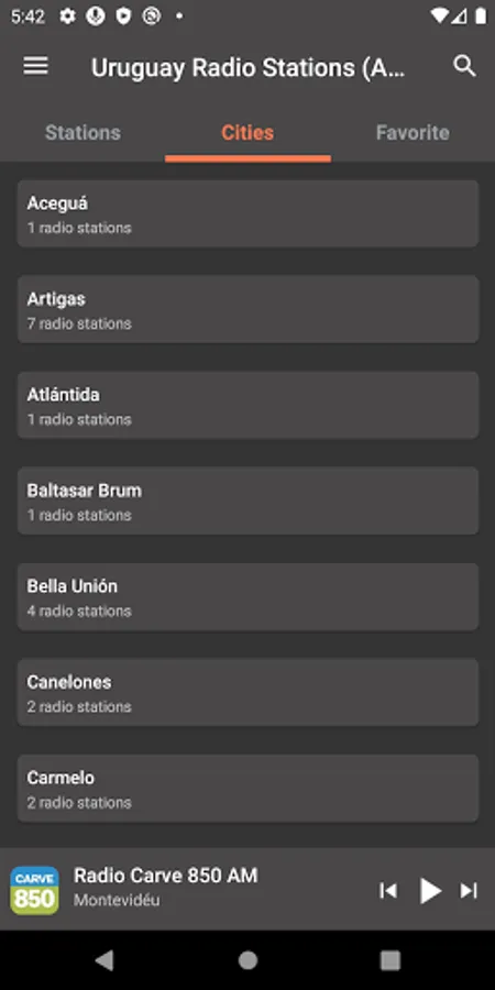 Montevideo radio stations, "Salto", "Paysandú", "Las Piedras", "Rivera", "Maldonado", "Villa de Tacuarembo", "Melo", "Mercedes", "Artigas" and many other provinces.