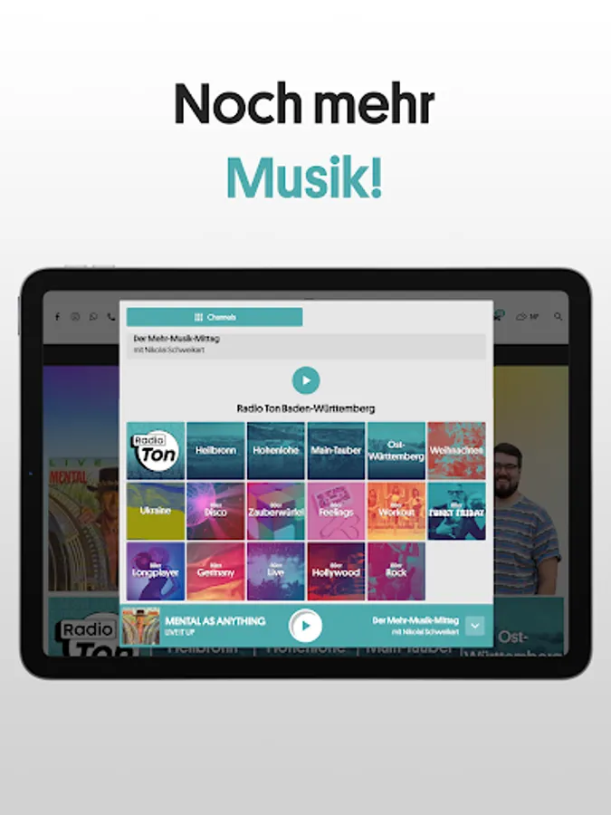 In addition to the general radio sound program, all regional channels, i.e. a separate program (e.g. for the Main-Tauber district, Hohenlohe, Ostwuerttemberg or for the city and state of Heilbronn as well as seven other music channels) can also be heard in the new app.