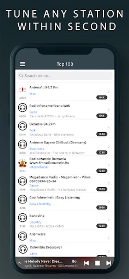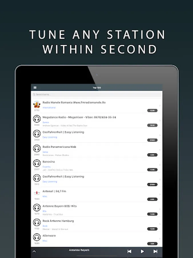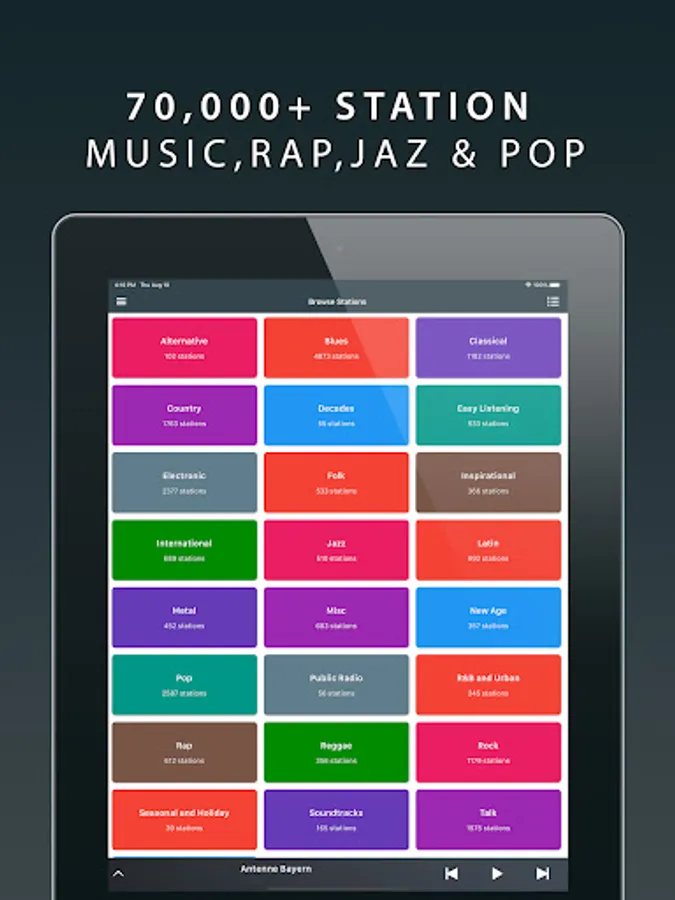 Radio Tuner Directory features over 50,000 professional and community programmed radio stations from around the globe. Radio Tuner offers tremendous depth and breadth of stations with genres ranging from Rock, Alternative, Jazz, Electronica, Bollywood, Latin to Zouk across a broad set of languages including Spanish, French, German, Swahili and Portuguese. We even have public radio, talk and police scanners available in a wide variety of cities worldwide.