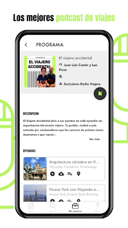 With the Radio Viajera app you can also create your own travel lists, adding podcasts to your "Upcoming trips" list so that when you get in the car, you can simply start listening to what to see in the destination you have chosen.