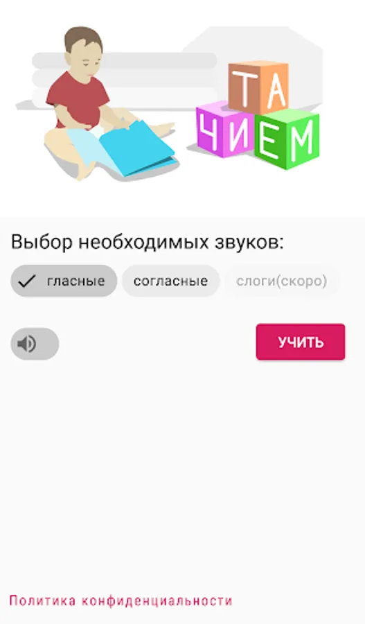 The application alternates images of letters and pronounces sounds, namely the sounds of the alphabet, not letters, this contributes to early reading by syllables. Images do not contain unnecessary information.