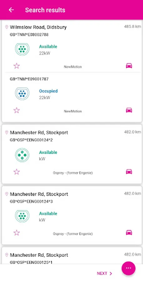 Search by city, zip code or charging station number. Use the search list for an overview of the charging stations that are currently available to you.