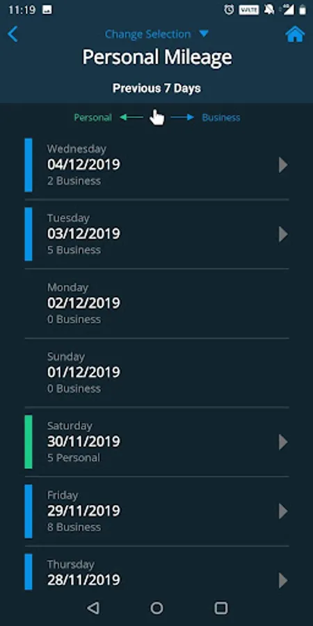 Business & Personal Mileage: Swipe to mark a journey as personal or business to record mileage with accuracy and ease.