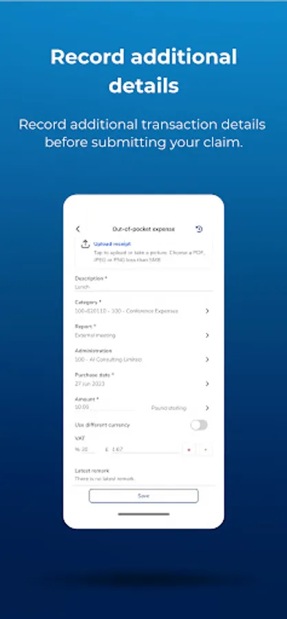 Whenever you make a purchase with your Velos card, it will be logged instantly in the Velos Expenses platform. If further validation is required, you can record additional transaction details by scanning receipts with your camera in the Velos Expense app. OCR (Optical Character Recognition) extracts the data and automatically populates recognised fields, such as purchase date, total amount, and VAT amount.
