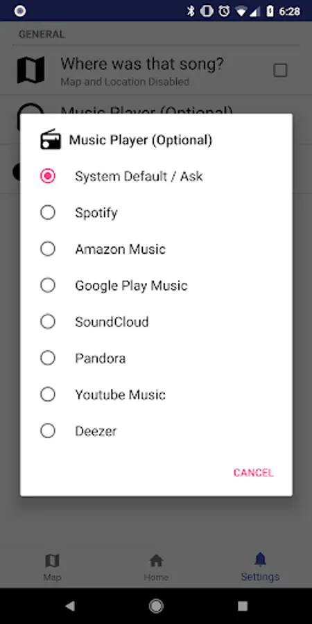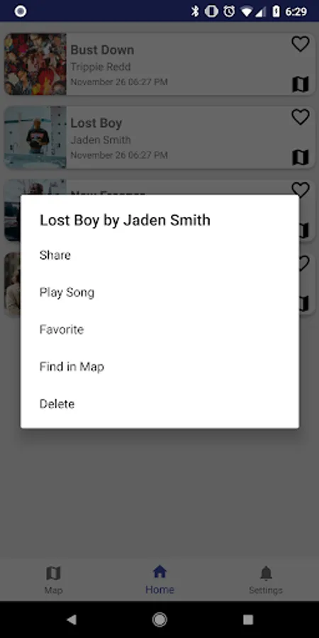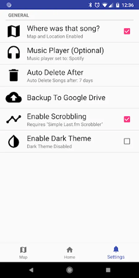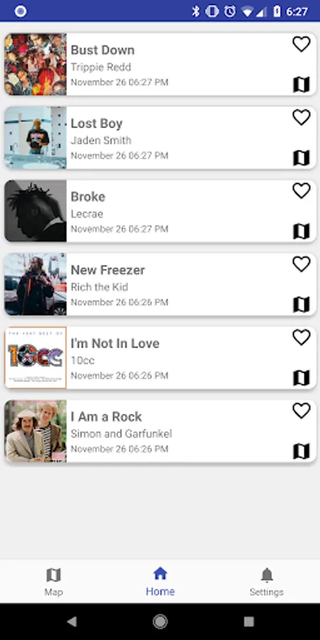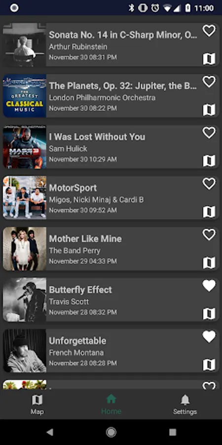 Want to see where you heard the song? Enable location in the settings and see your musical journey on a dark themed map. You can also jump to a song in the list by tapping the map icon.