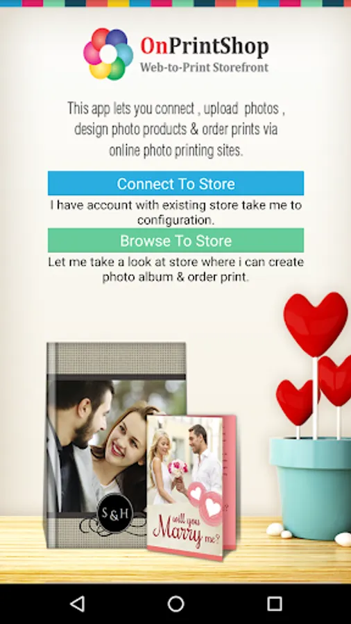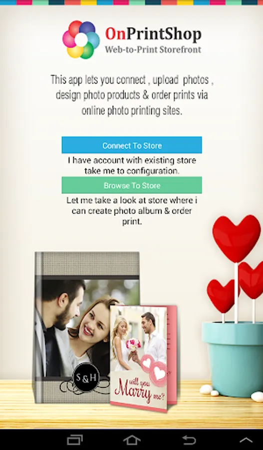 Application will be successfully connect to photo album website/server who are using OnPrintShop Solution.