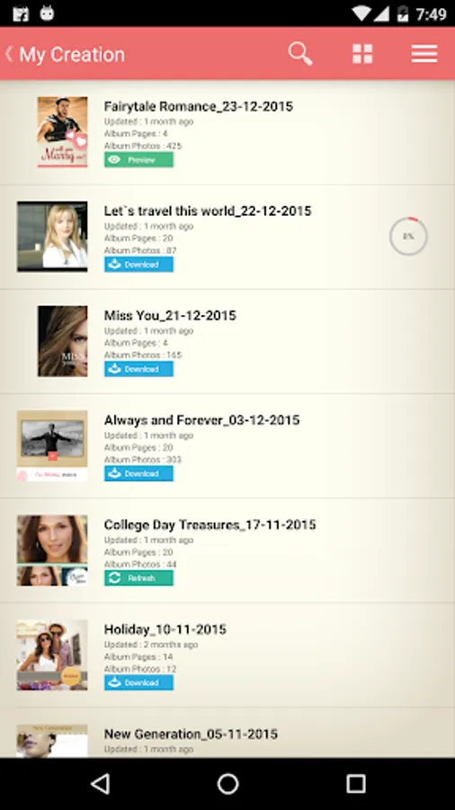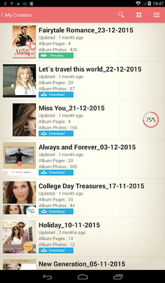 User can download generated albums and preview in mobile.
