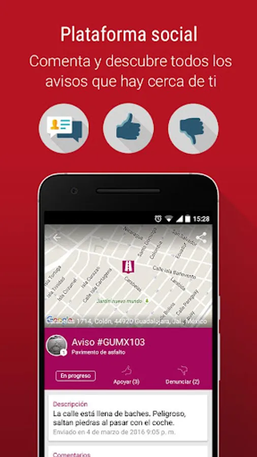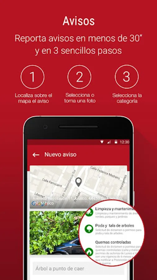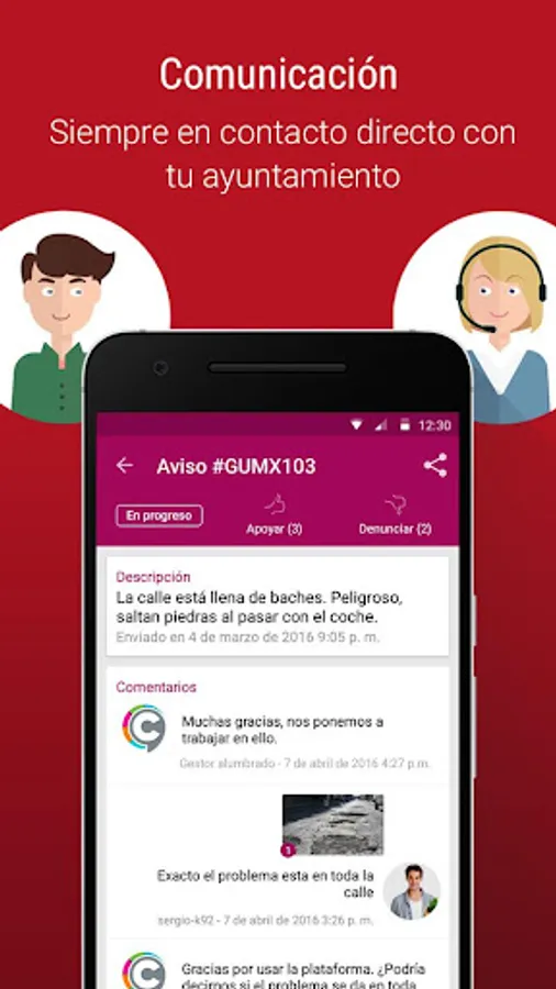 - Submit reports on public roads in 30 "and know the status of the resolution in real time.