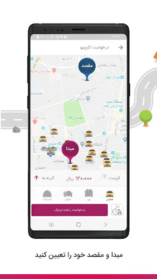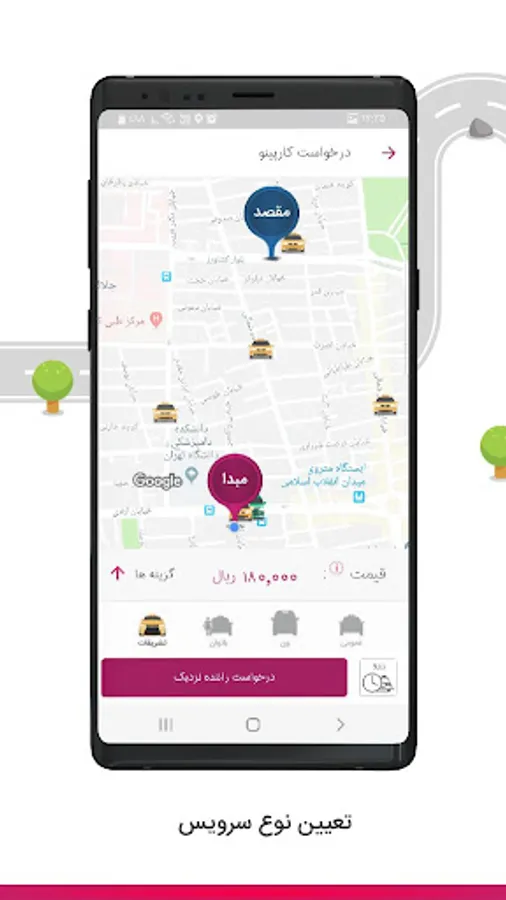 Carpino is a taxi ride-hailing service in Tehran, using smart phones.