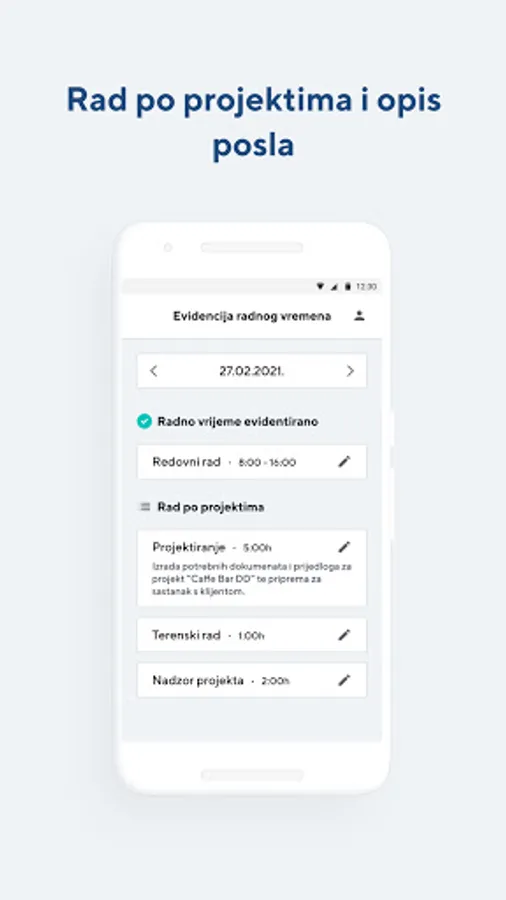 The Working Hours application enables easy registration of arrivals and departures and addition of a daily report of completed tasks.