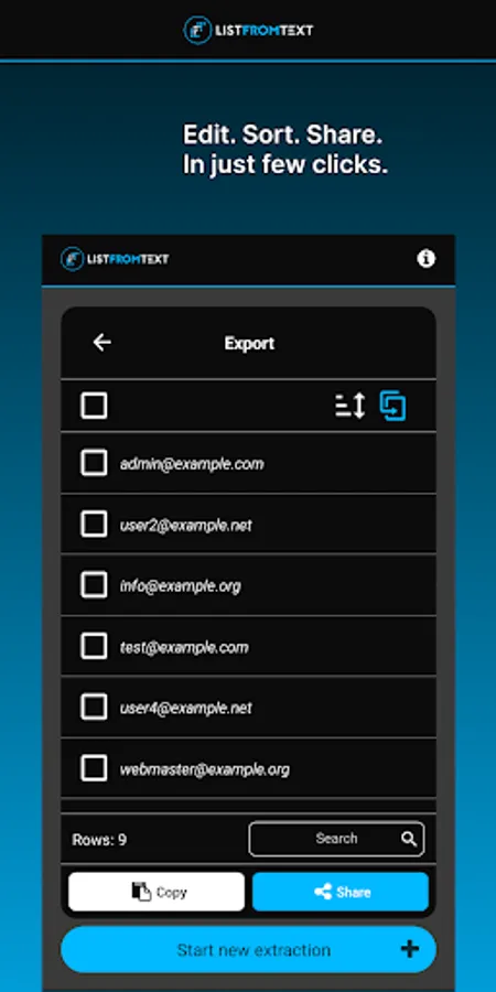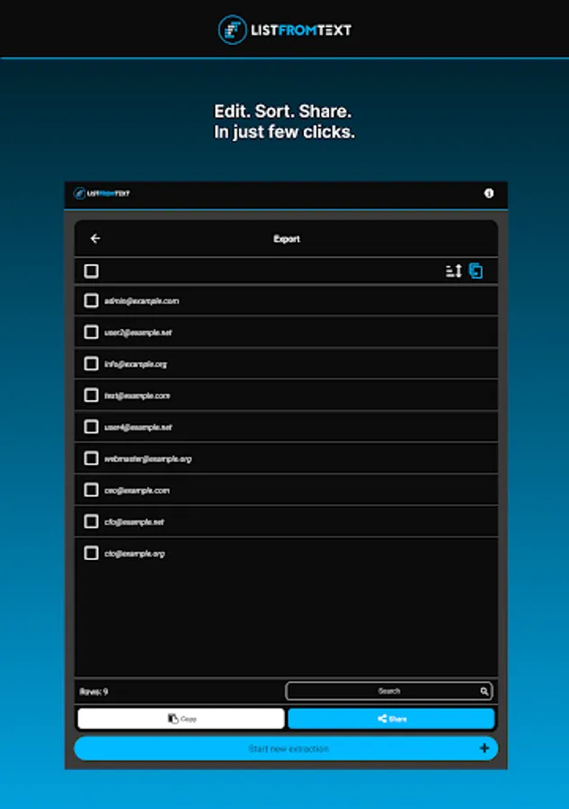 ListFromText is a text productivity tool to help you transform text into useful lists, in few clicks.