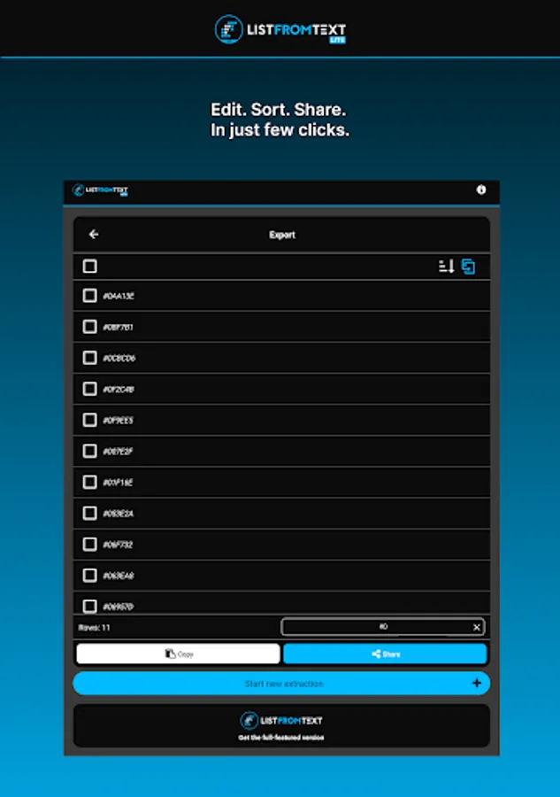 ListFromText Lite is a text productivity tool to help you transform text into useful lists, in few clicks.