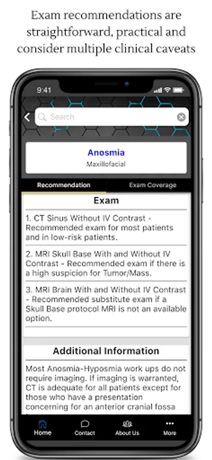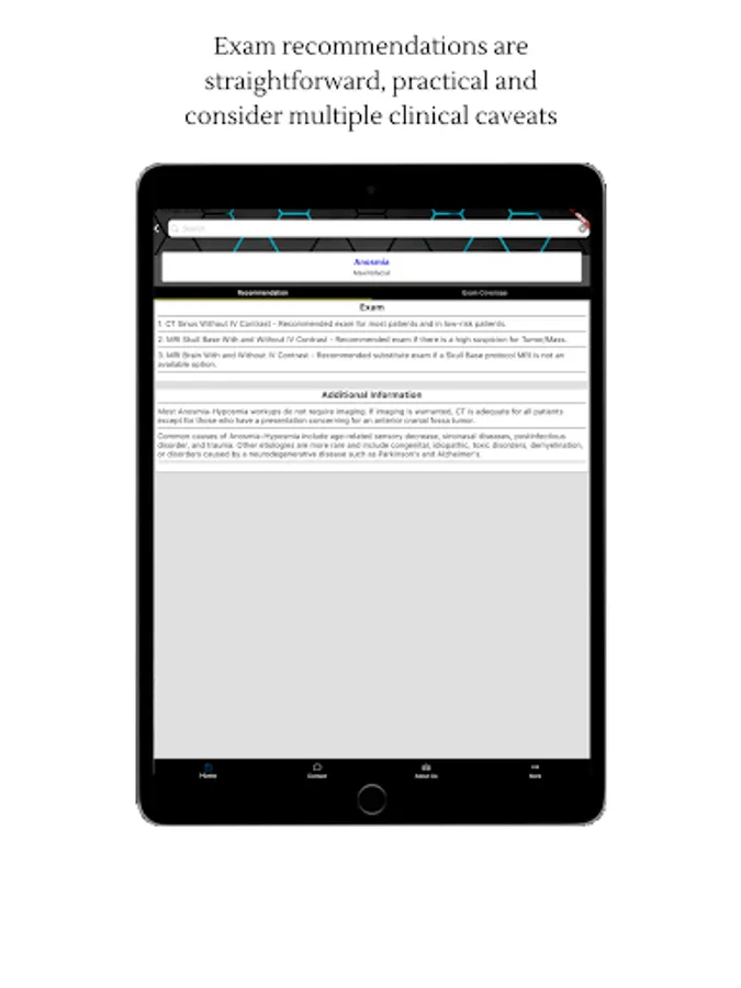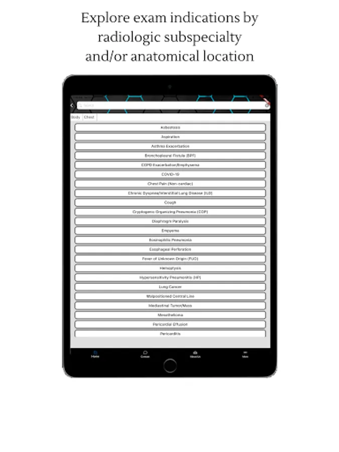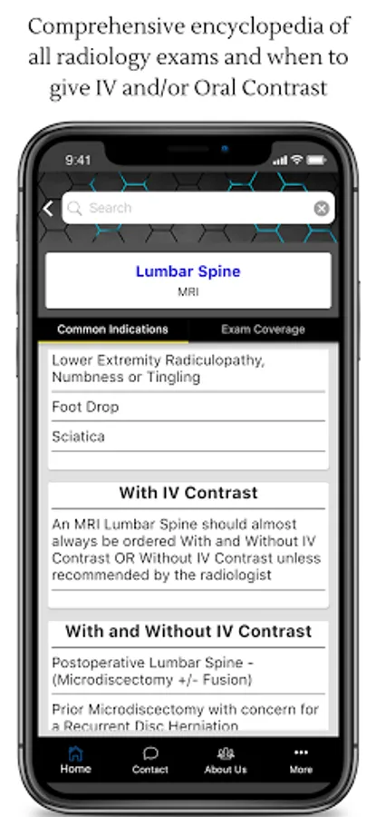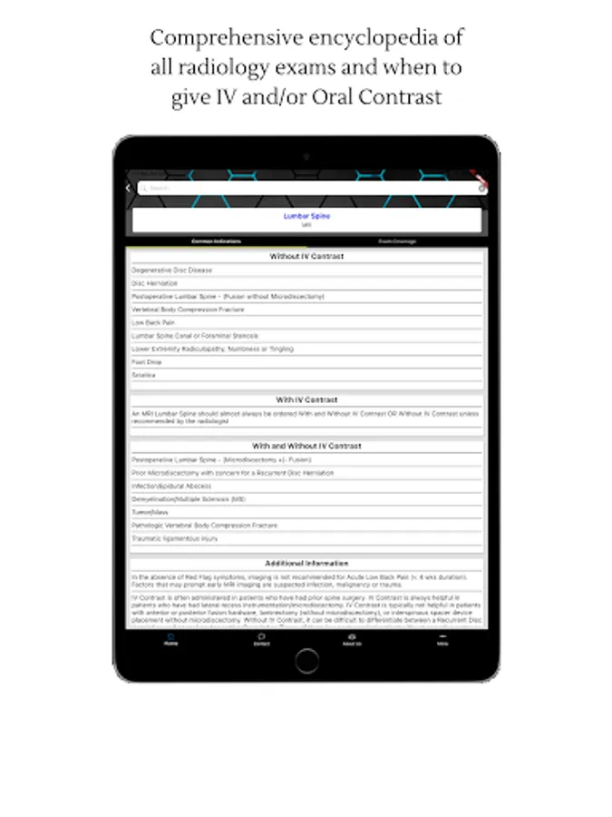 * Comprehensive encyclopedia of radiology exams. Every type of CT, MRI, Ultrasound, etc. is listed with common indications and comes with practical considerations so that you can confidently order a Multiphase CT and/or CTA without running the risk of exposing your patient to unnecessary radiation and cost only to find out later that the exam is non-diagnostic.