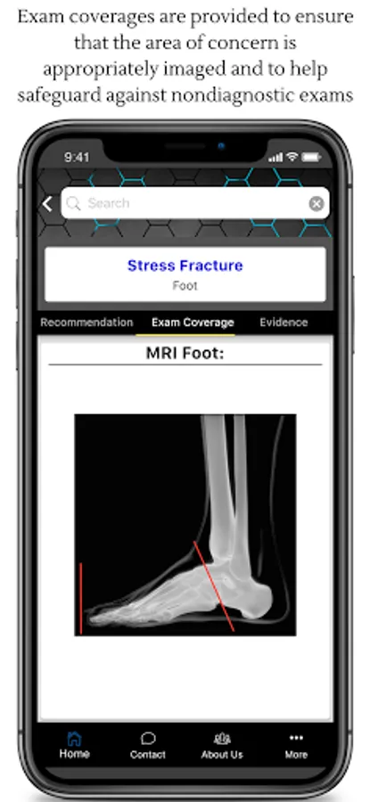 * Exam coverage pictures of every CT and MRI so that you can confidently order an MRI Ankle vs MRI Foot for example and trust that the suspected pathology/area of interest will be adequately evaluated and covered.