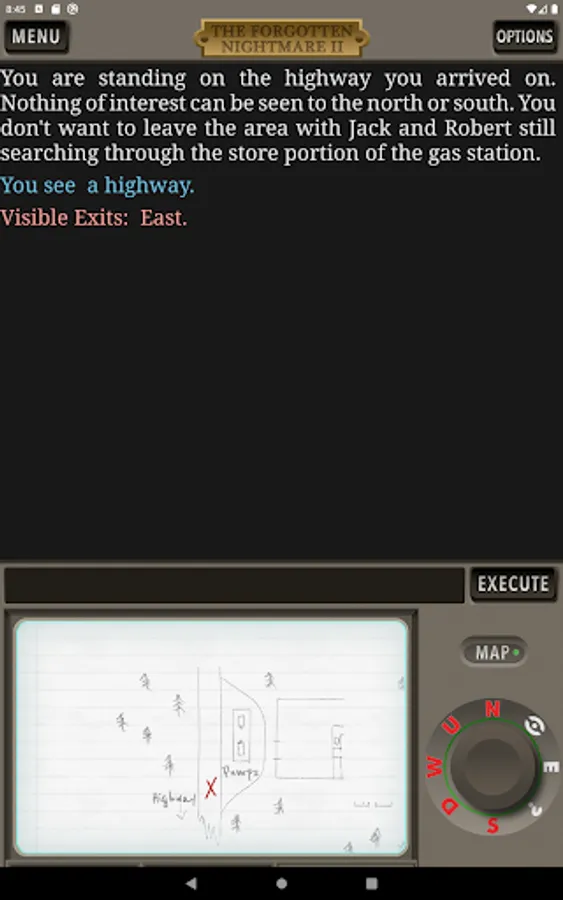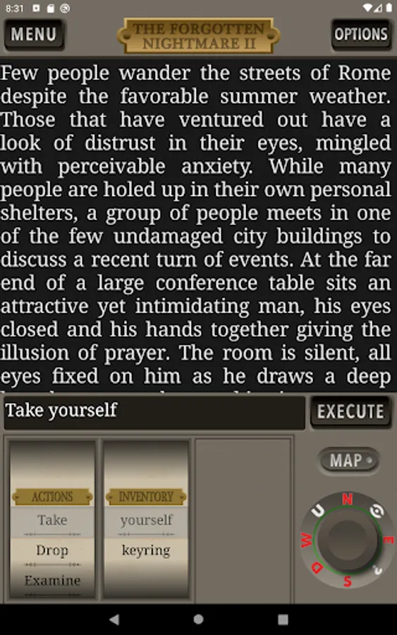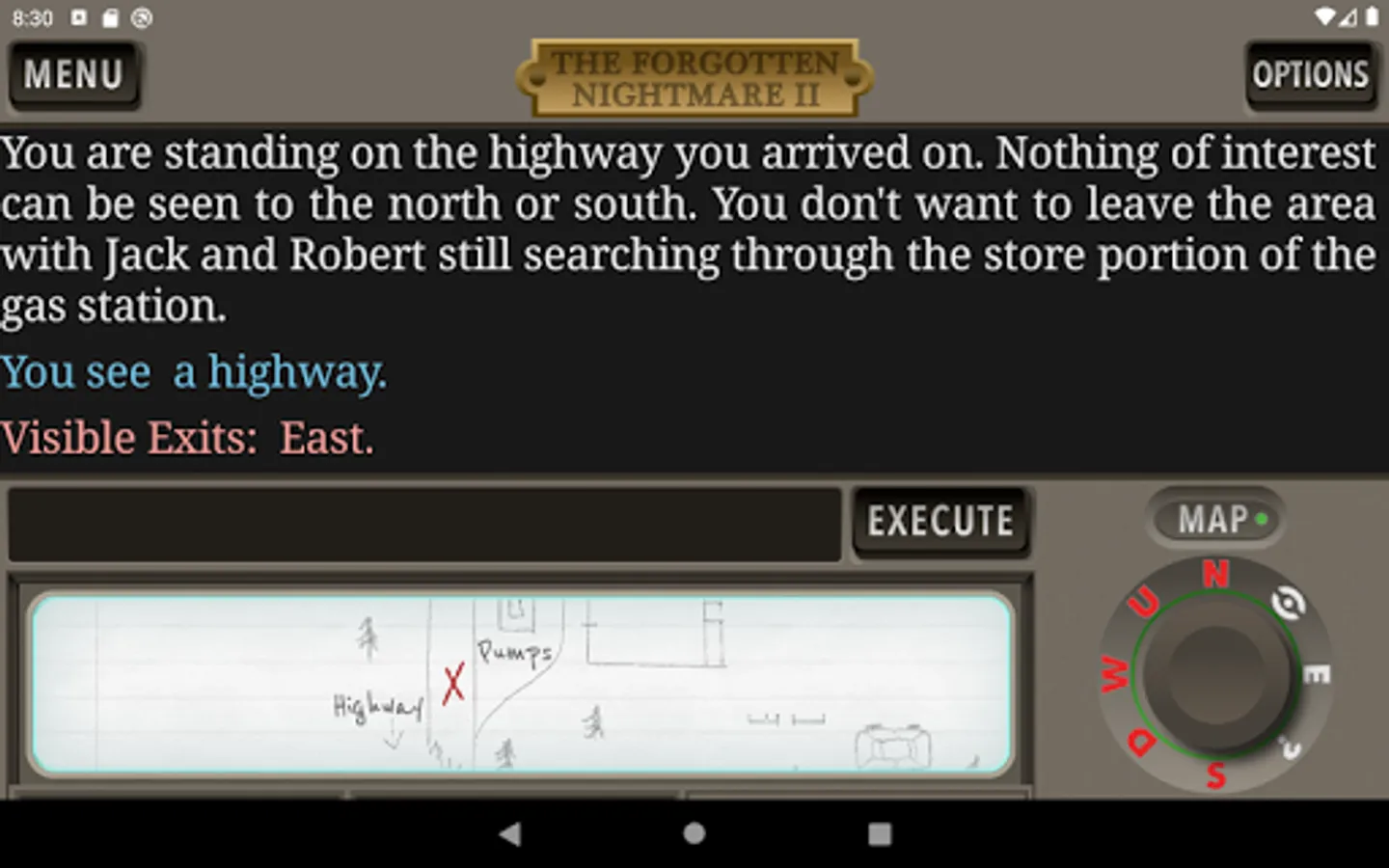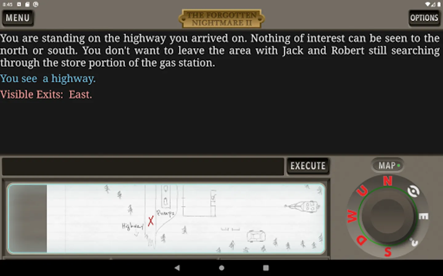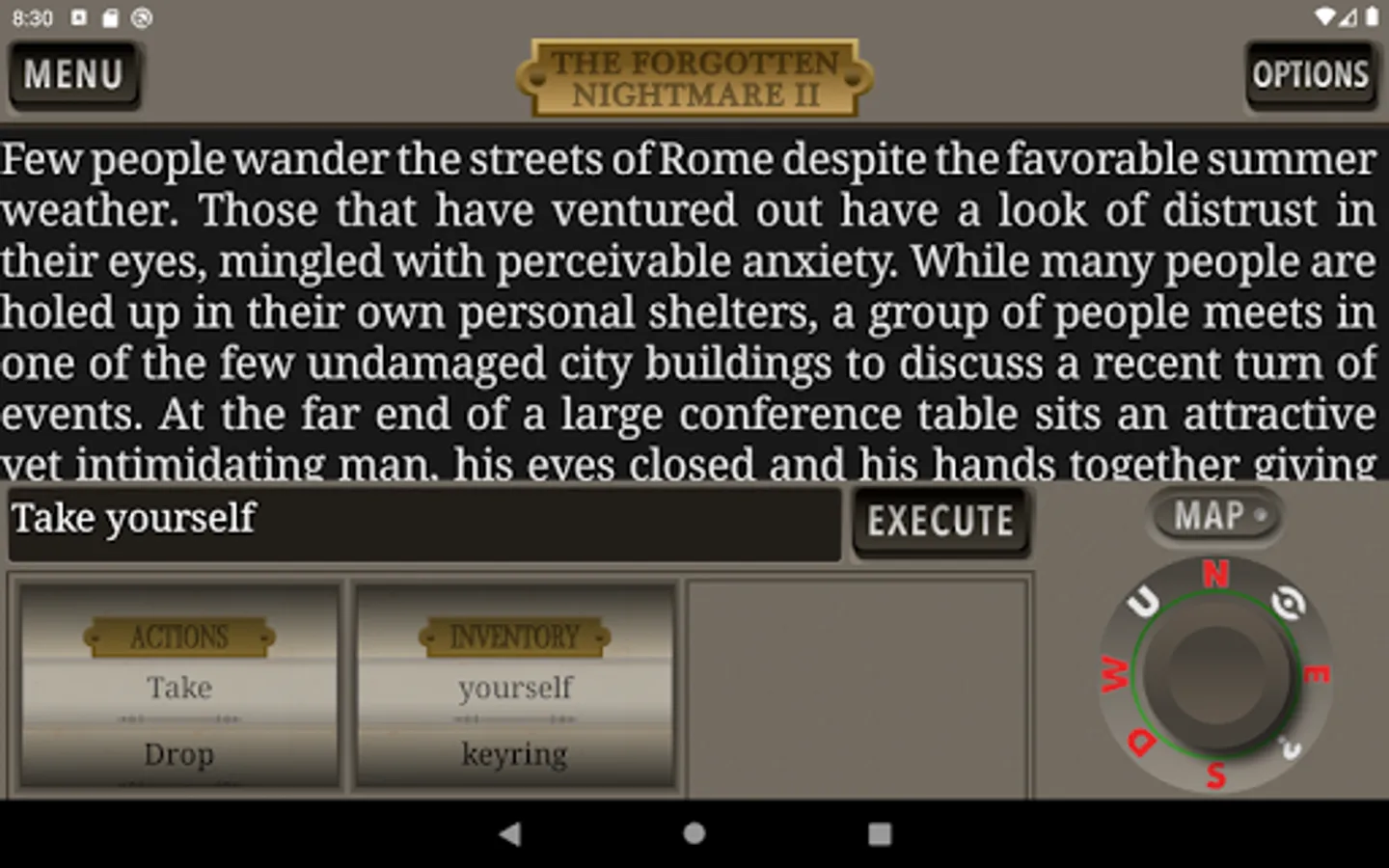 “The Forgotten Nightmare II: A New Reality” is the second chapter in a series of all text (Interactive Fiction) adventure games. Going against modern game evolution, the only graphics you will have is a map. It is a playable story which uses your imagination to paint the pictures. It is not simply a multiple choice game but has the ability to accept full commands with seemingly endless and often comical responses.