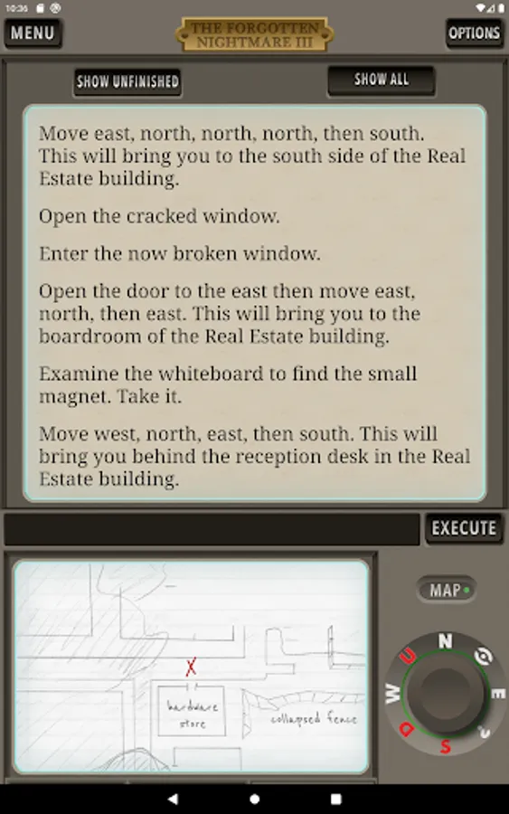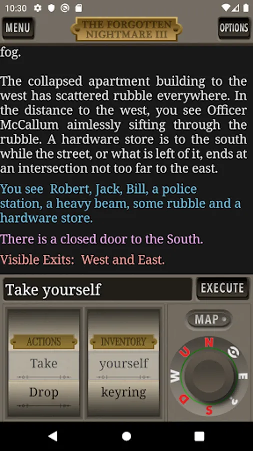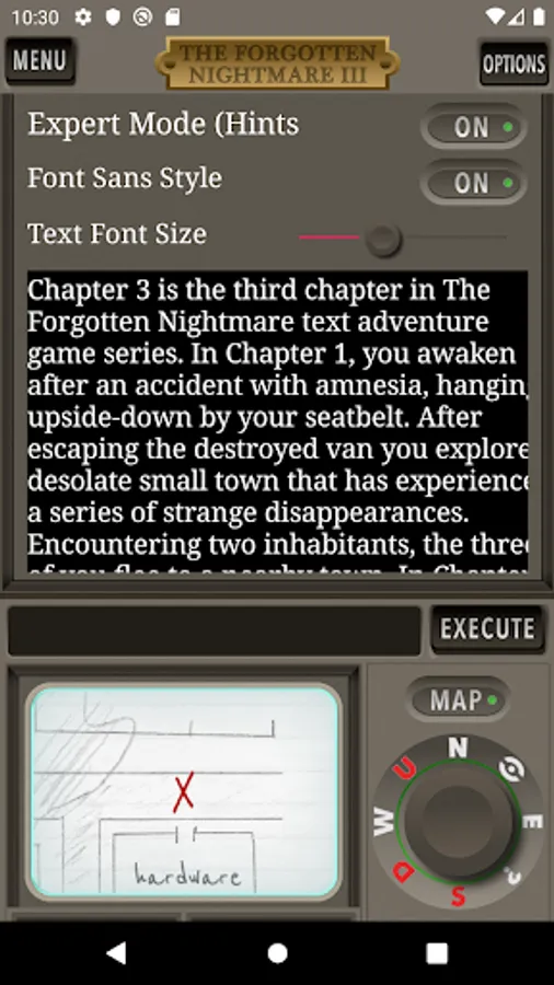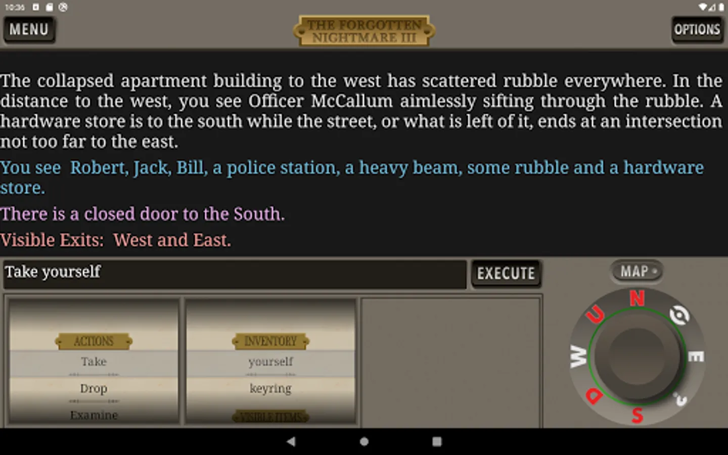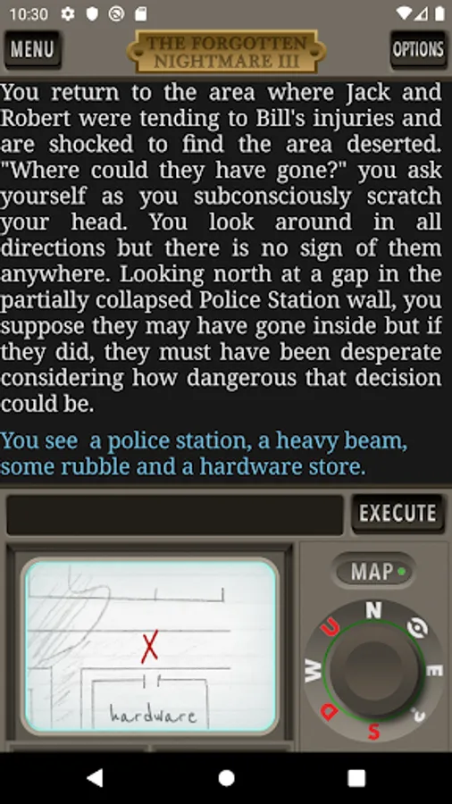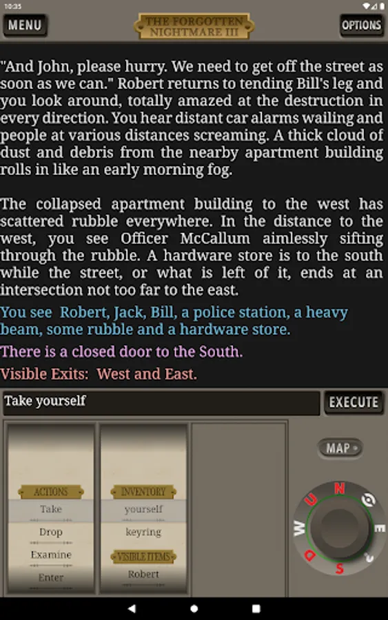 The Forgotten Nightmare 3 is the third chapter in The Forgotten Nightmare text adventure game series. In Chapter 1, you awaken after an accident with amnesia, hanging upside-down by your seatbelt. After escaping the destroyed van you explore a desolate small town that has experienced a series of strange disappearances. Encountering two inhabitants, the three of you flee to a nearby town. In Chapter two, your two new friends are arrested for unknown reasons and you focus on exploring this new town and free your companions. After a massive earthquake strikes, you gain a fourth companion. But where will the four of you go? Elsewhere in the world, chaos reigns as natural disasters, wars, and plagues increase exponentially. Markus Bernhoft takes the stage to lead a changing world that must band together to face its new challenges.
