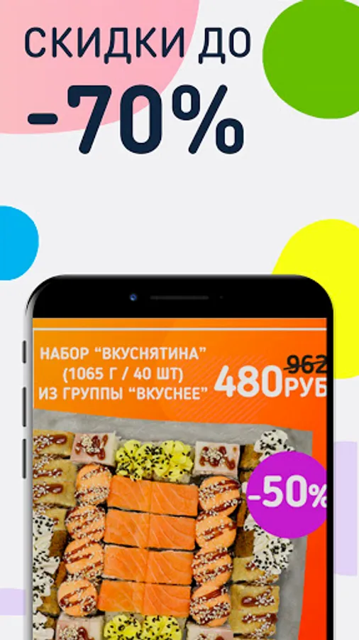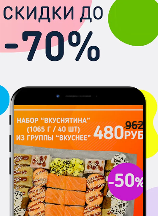 Entrust us with the delivery of rolls, pizza, hot and first courses, pastries, WOK boxes, drinks with discounts up to 70%!