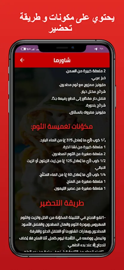 The application of making chicken shawarma with many recipes is an application that displays many and varied recipes for making delicious chicken shawarma, and in the application of making chicken shawarma with many recipes, you can find special sections for each type of shawarma, and within these sections you can find all the recipes and ingredients for the type of shawarma to be made