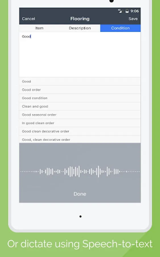 InventoryBase is an easy to use Property Inspection App for producing professional property inventory and inspection reports, surveys, audits and risk assessments on-site at a property without the need for an Internet connection.