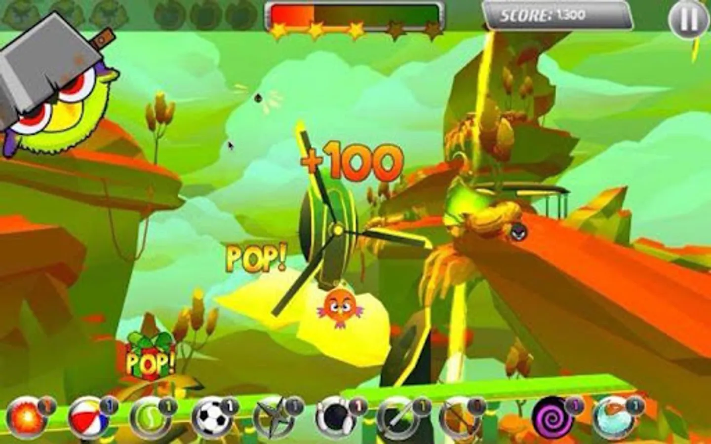 Dazzling colorful 3-D worlds await you as you play to destroy enemy birds that can attack you from anywhere at anytime.