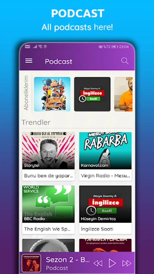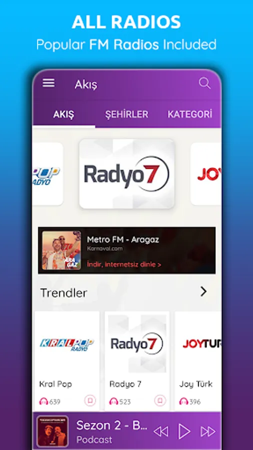 All radios, including FM Radio lines, are listened to uninterrupted and high quality with Radio Antenna. Search for the radio station you want to listen to and add it to your favorites if you wish. The Radio Antenna does not have an Internet radio feature. However, by optimizing data, it allows you to listen to all stations using the highest quality, minimum data without loss of sound.