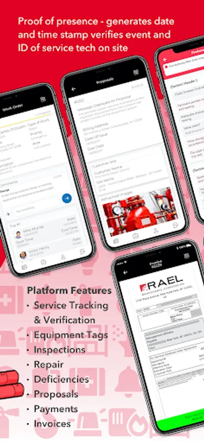 - Proof of presence - generates date and time stamp verifies event and ID of service tech on site