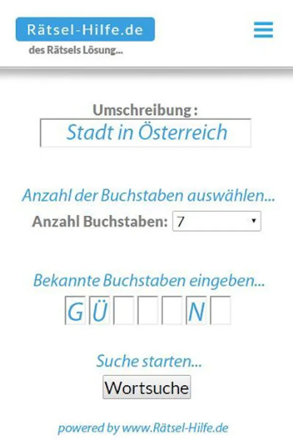Are you some of the letters of the solution word known, then you can alternatively also search for the solution word. Simply select the number of letters,