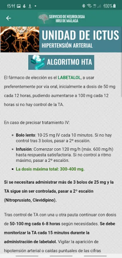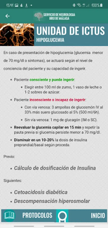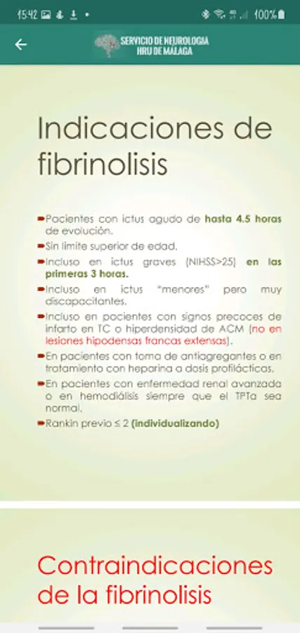 In this application, the protocols for action and care for the treatment of acute stroke or cerebrovascular accident (CVA) in a Stroke Unit are compiled, arranged to facilitate a quick consultation of them, included in the same app to enable offline consultation. In Neurology, stroke is the most prevalent disease that motivates urgent consultation and hospitalization, with this application you can quickly consult the protocol of action in the various scenarios.