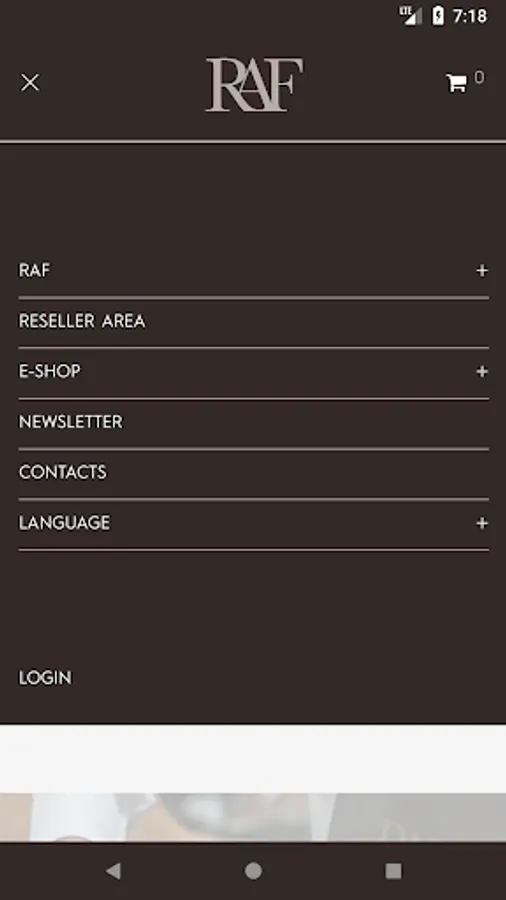 • Through the RAF brand app you'll be able to consult, everywhere you are and every time, our catalogue. The interface will allow the client to navigate easily between the given options.
