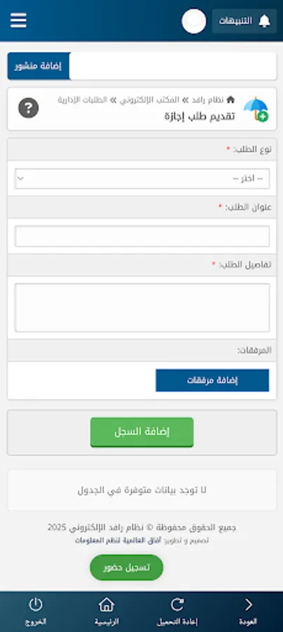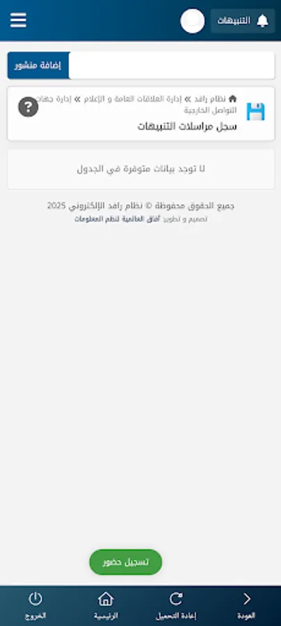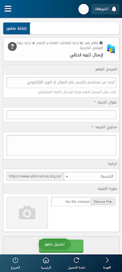 This application is for employees of the Al-Namas Charitable Society, and its main features include: