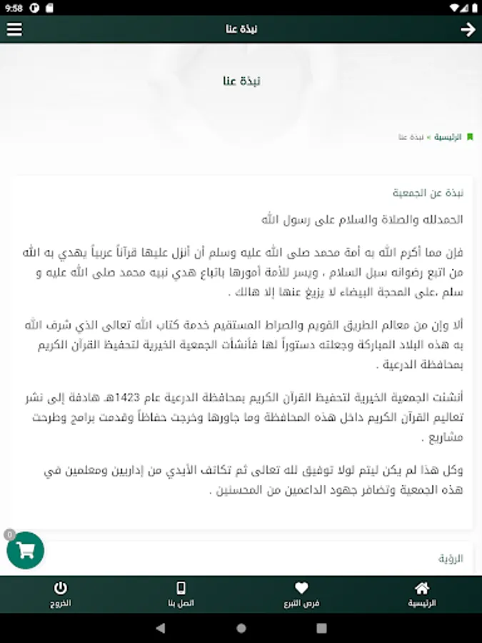 The Charitable Association for the Memorization of the Noble Qur’an was established in the Diriyah Governorate in 1423 AH with the aim of spreading the teachings of the Noble Qur’an within this governorate and its vicinity. It came out as a memorizer and presented programs and projects.