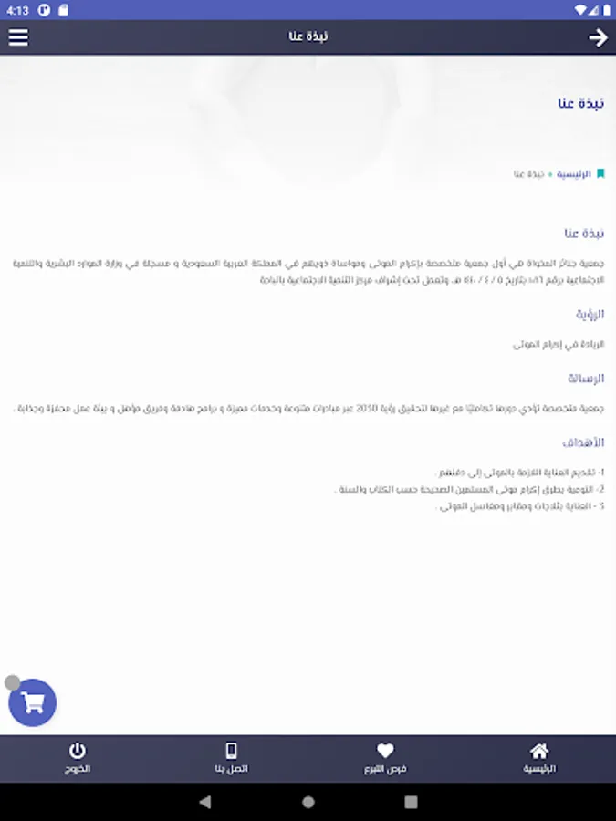 A specialized association that performs its complementary role with others to achieve Vision 2030 through various initiatives, distinguished services, targeted programs, a qualified team, and a stimulating and attractive work environment.