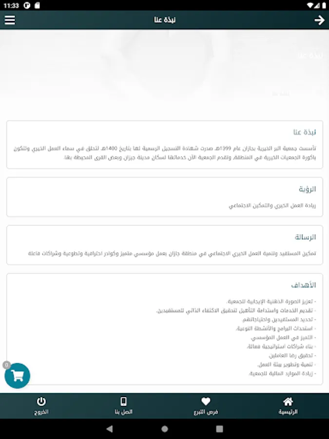 The Al-Bir Charity Association was established in Jazan in 1399 AH, and its official registration certificate was issued on 1400 AH, to fly in the sky of charitable work and to be the first charitable association in the region. The association now provides its services to the residents of the city of Jizan and some of the surrounding villages.