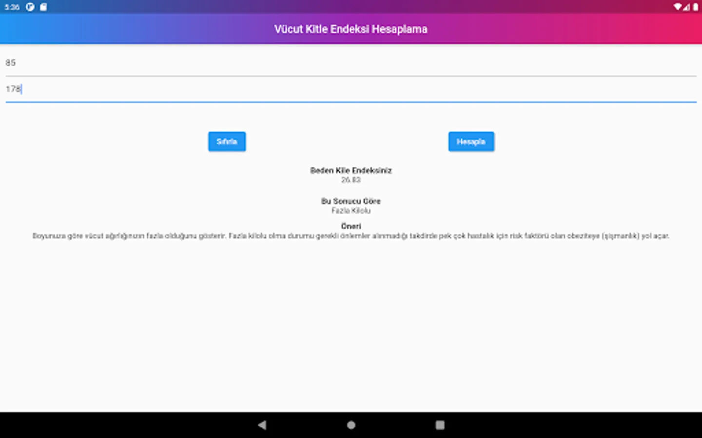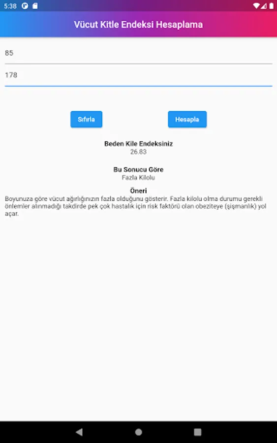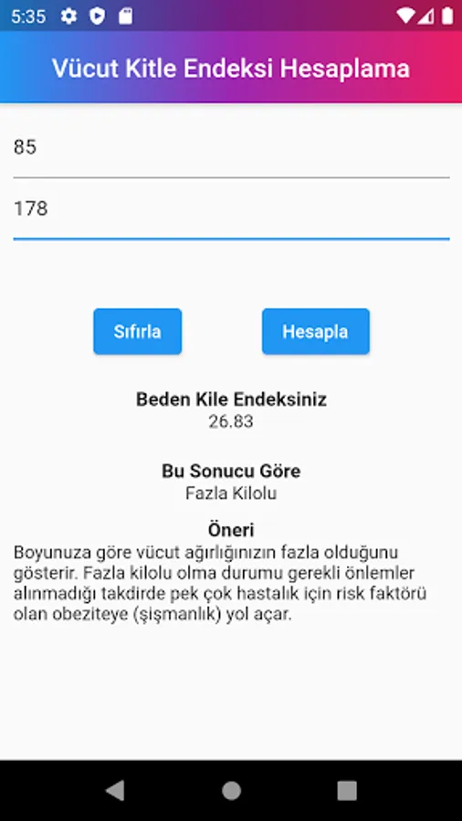 Body Mass Index (BMI) calculated by dividing your weight by the square of your height (kg / m²) in obesity calculation
