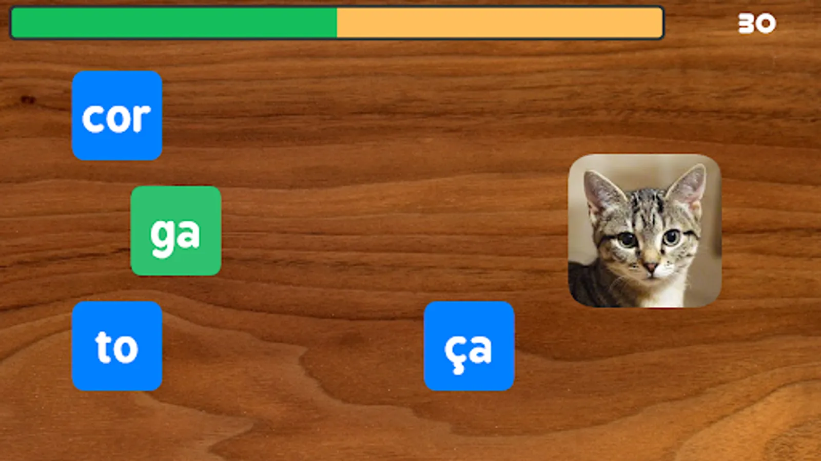 A game to learn to write with Portuguese syllables. Choose the correct syllables to compose the word presented to you! When you complete a word, the game continues with a new one. So many different words to play and learn, all made up of two syllables.