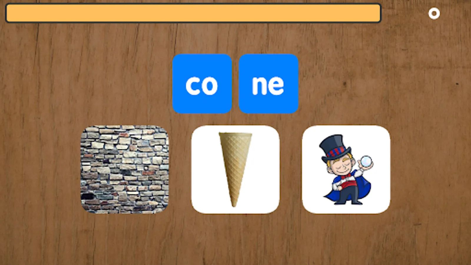 Read the word divided into syllables and select the corresponding image. When you select the right image, you can move on to the next word.