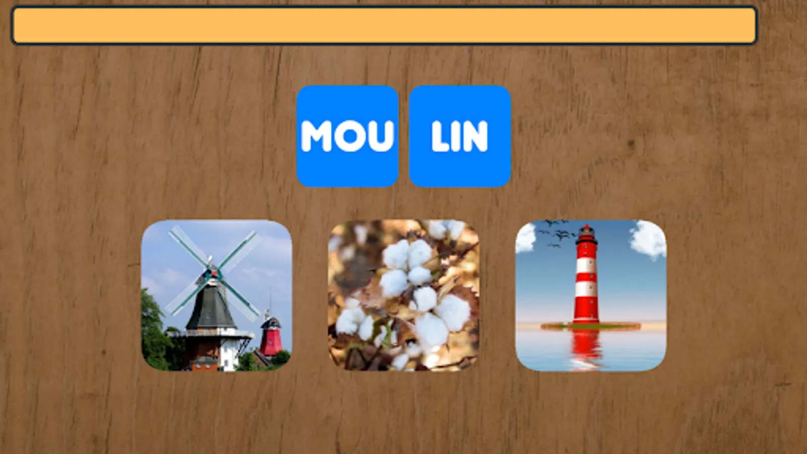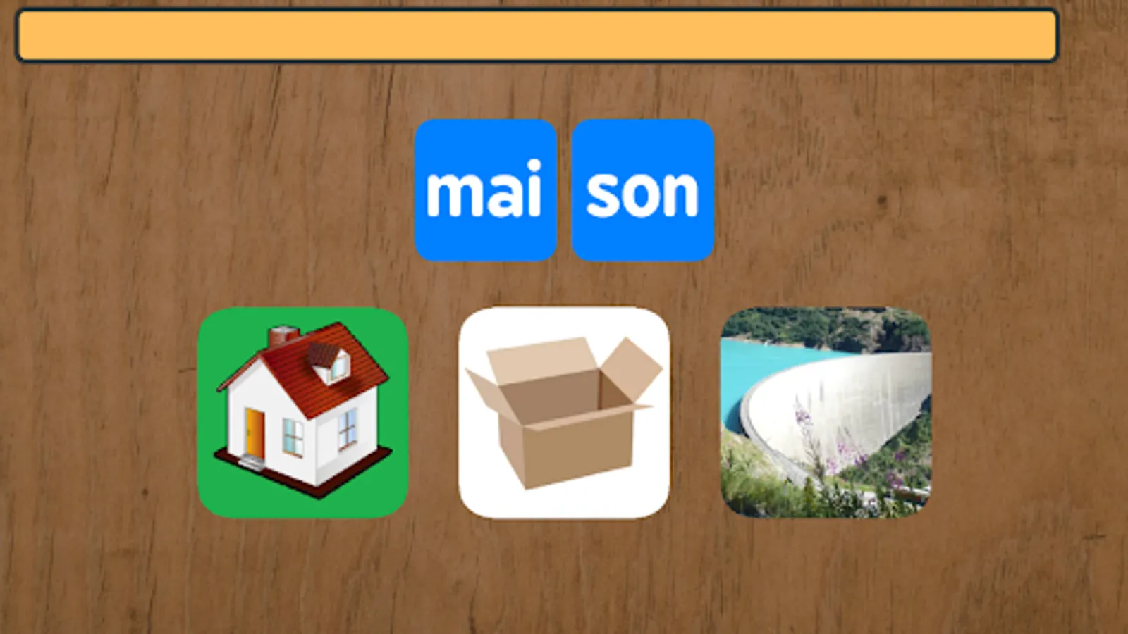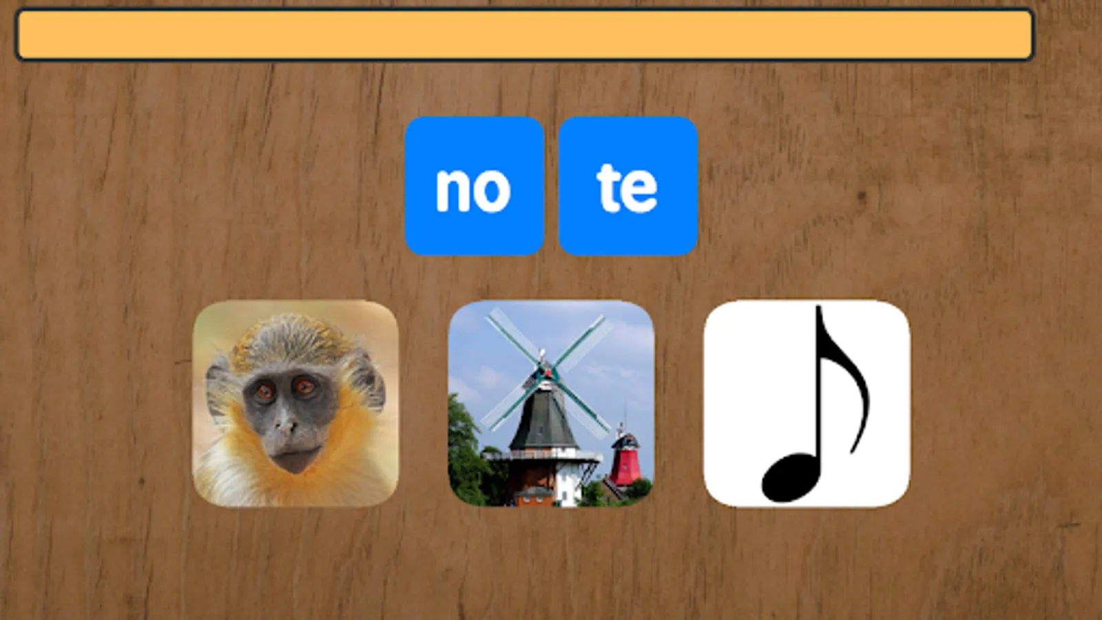 Read the word divided into syllables and select the corresponding picture. When you select the right image, you can move on to the next word.